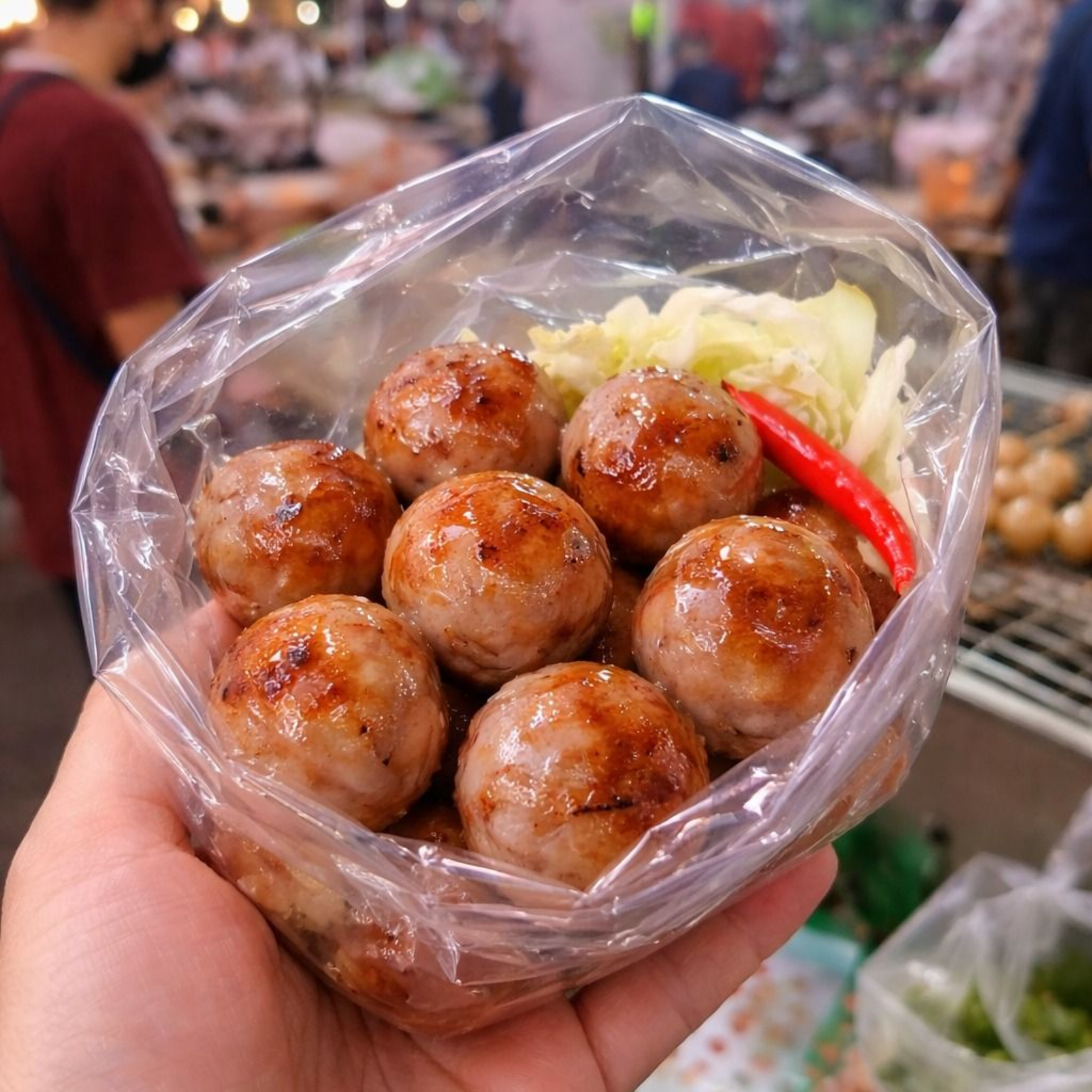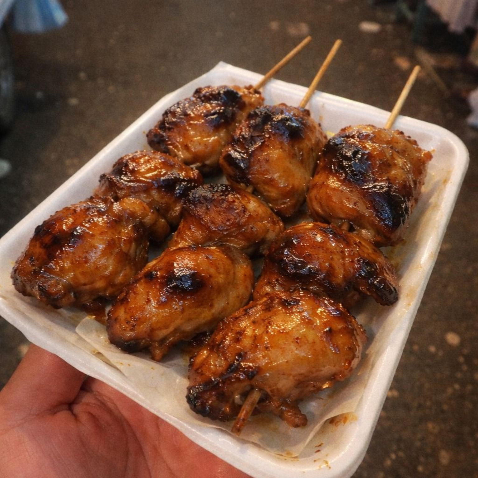 Smoky, juicy, slightly sweet and only a few baht per stick. Best in the morning from roadside grills.