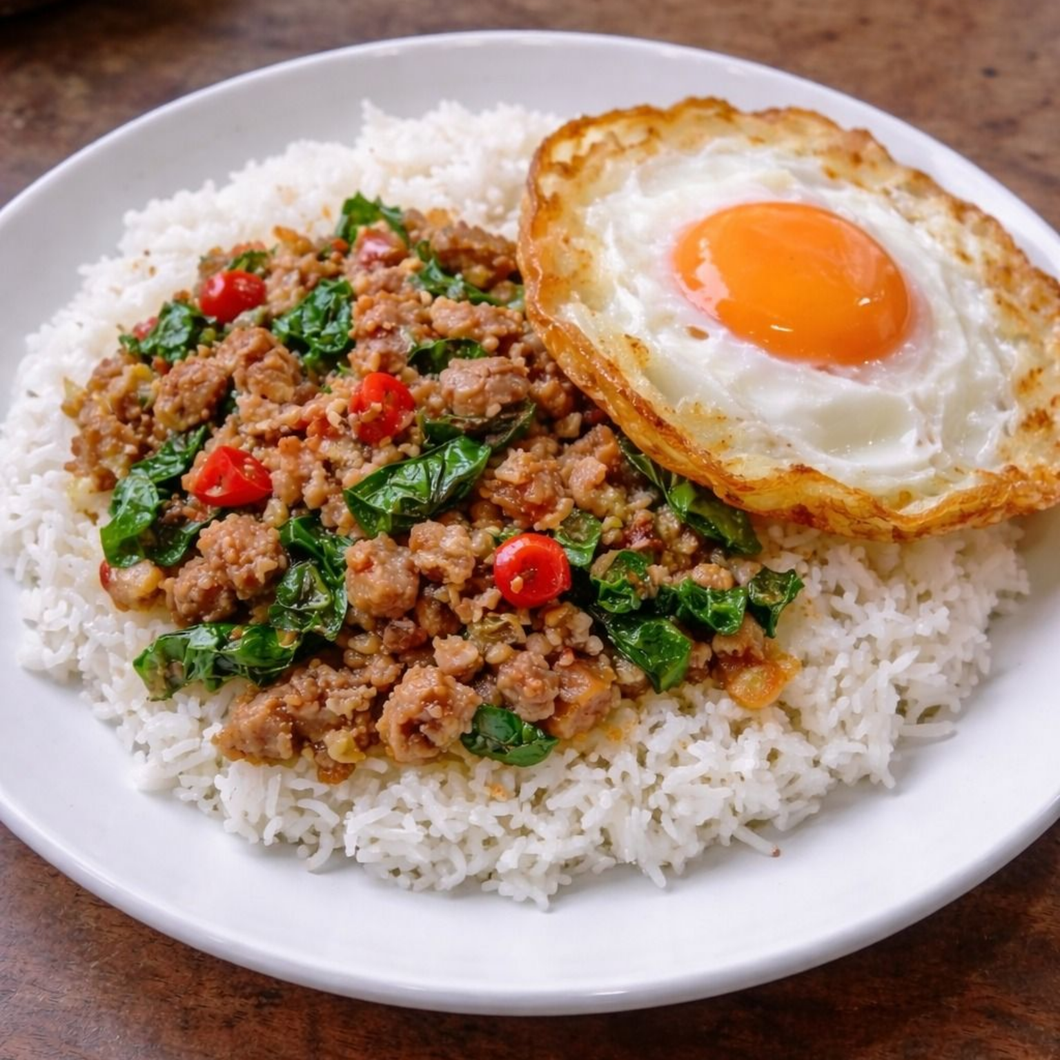 Not the tourist version the spicy, oily, holy basil stir-fry with lots of chili. Fast, fiery, and deeply satisfying. Ask for “spicy” if you dare.