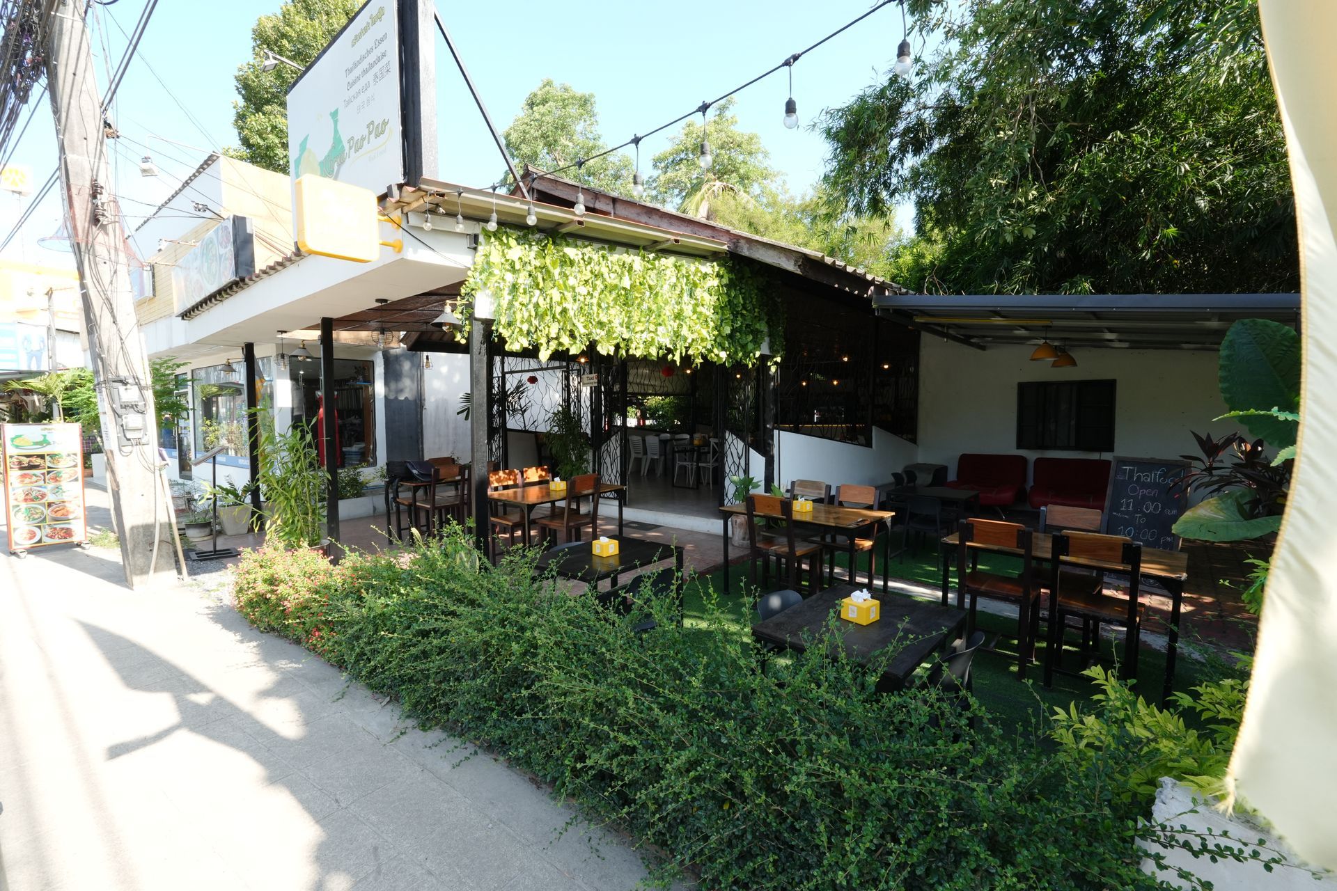 Here you can find homemade food, Thai food, Great salads, 100% fresh juice, Vegan and Vegetarian options. Enjoy botanic outdoor setting and delicious food!