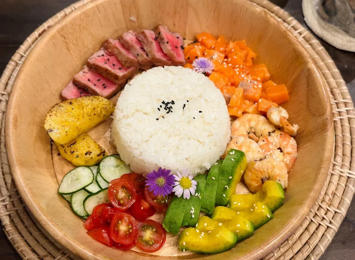 Enjoy fresh, healthy poke bowls at Oh My Bowl Salad Bar & Café. With vegan options, outdoor seating, and a cozy setting, it’s perfect for a quick meal or a relaxed bite in Maenam.