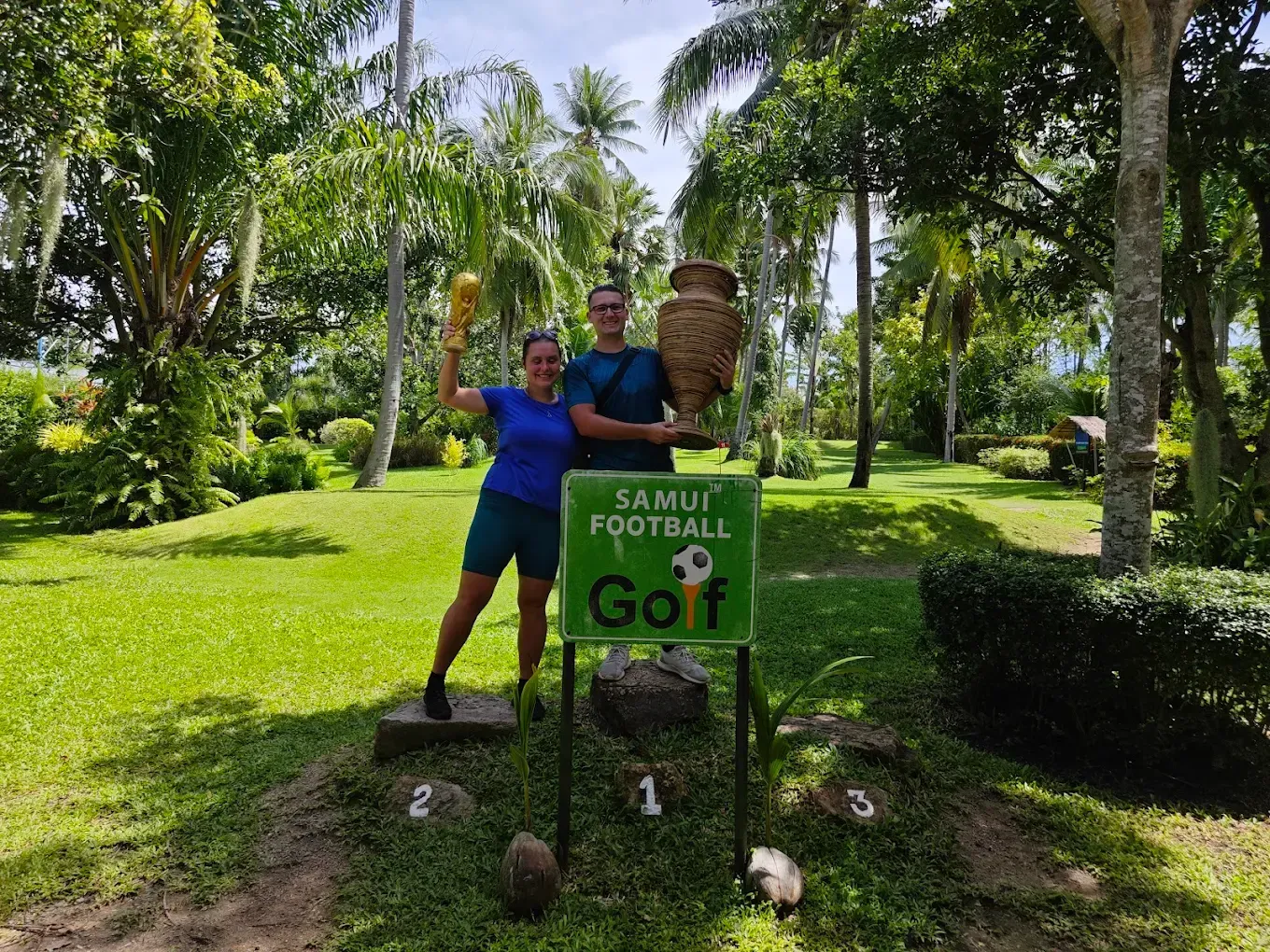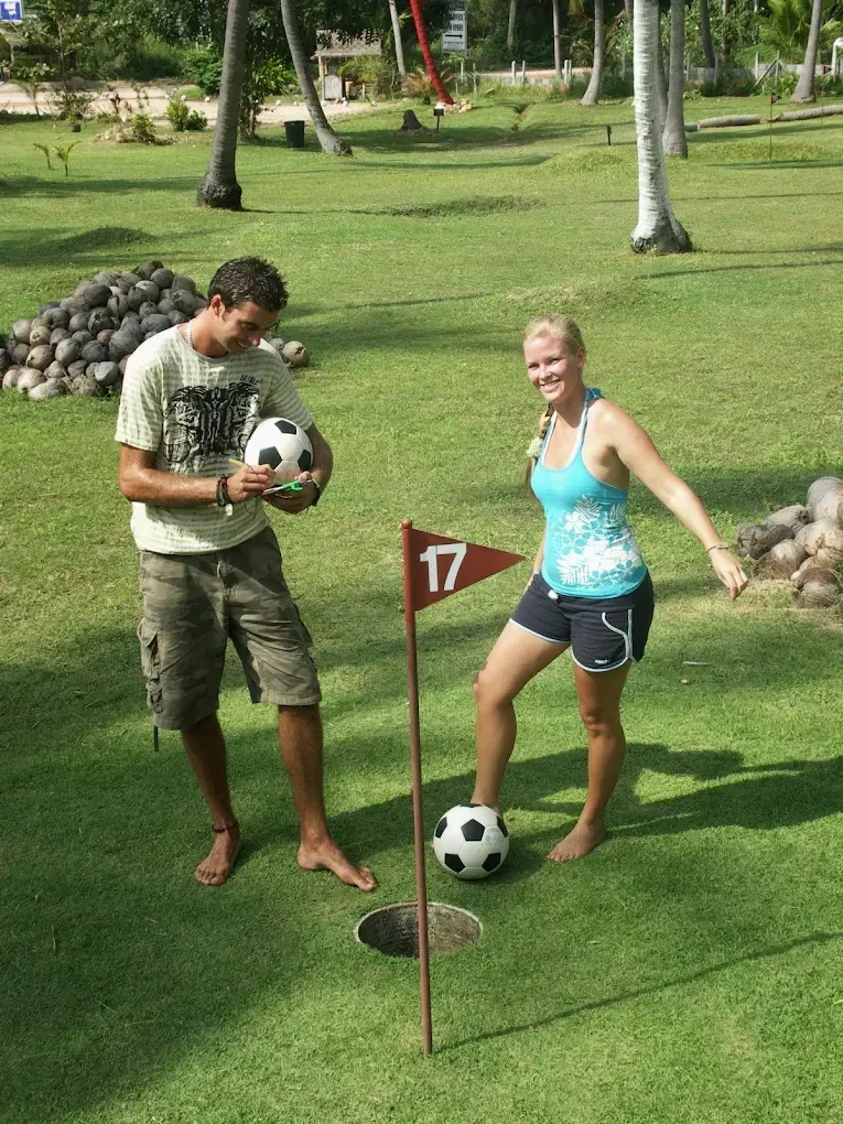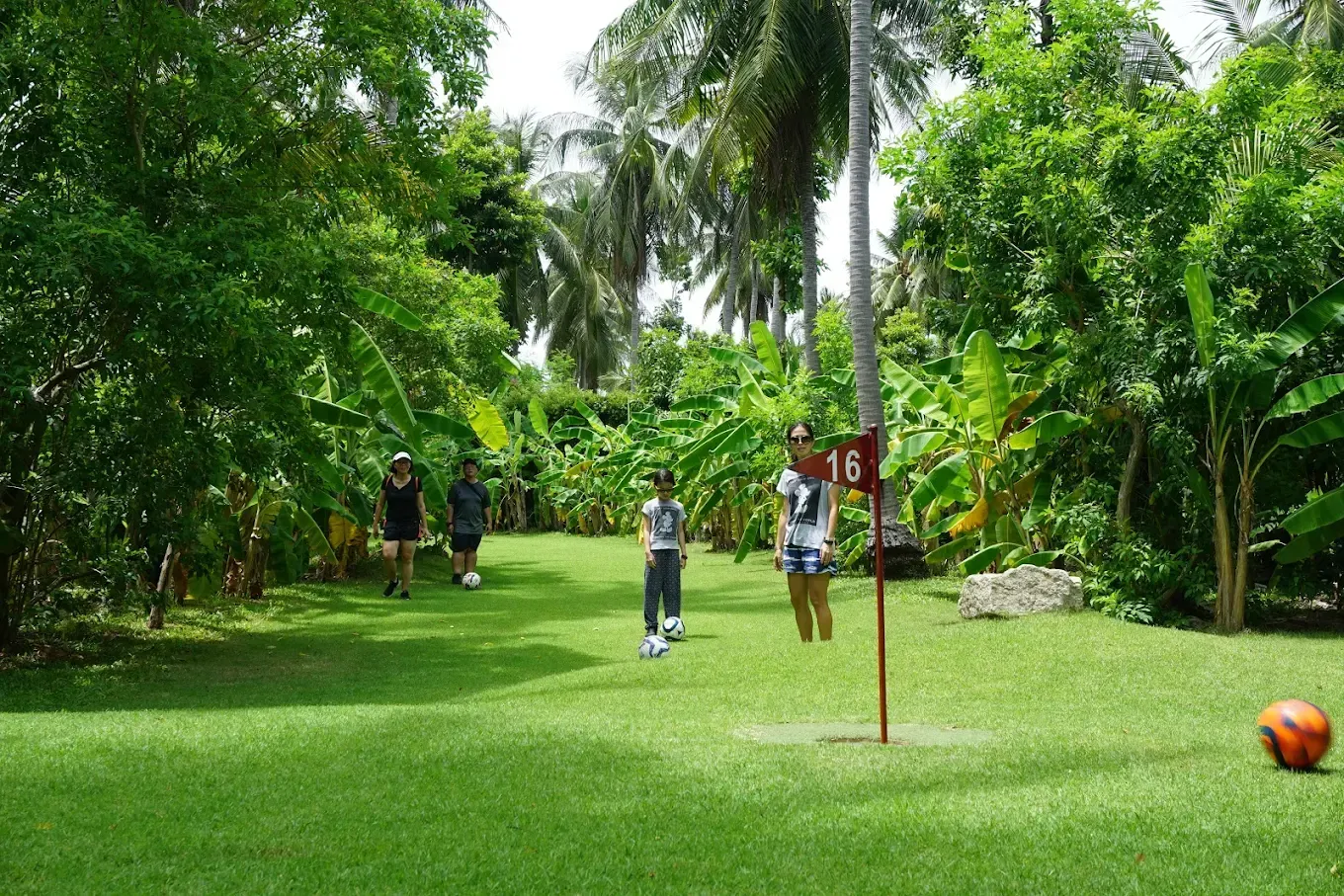 At Samui Football Golf we get you, your family and friends playing laughing and enjoying the holiday fun together all while walking around the island’s beautiful botanical gardens.